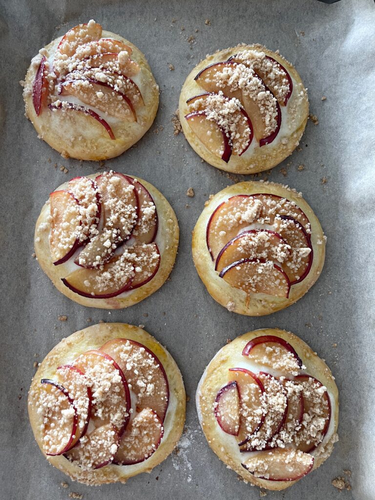 Viel Spaß beim Nachbacken der Streuseltaler mit Pflaumen und Griesspudding. Lasst sie euch gut schmecken.