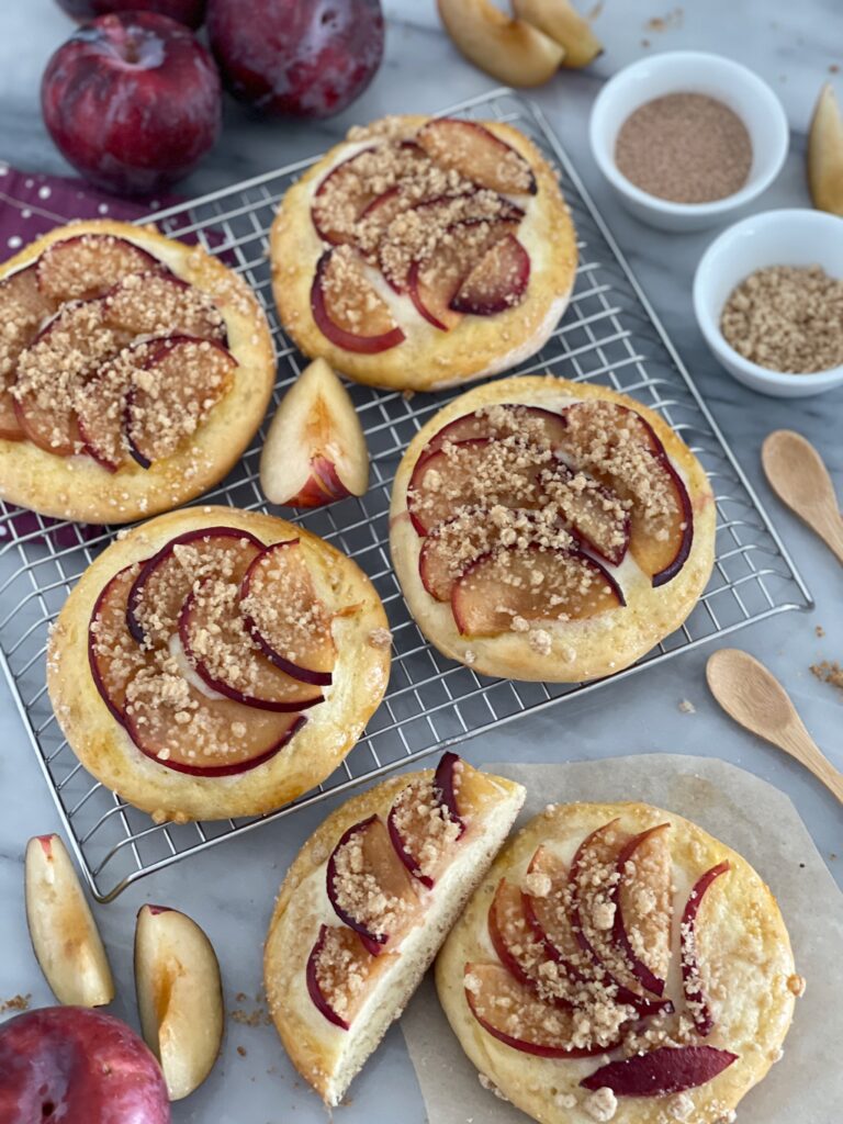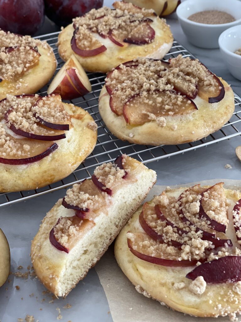Streuseltaler mit Pflaumen und Griesspudding